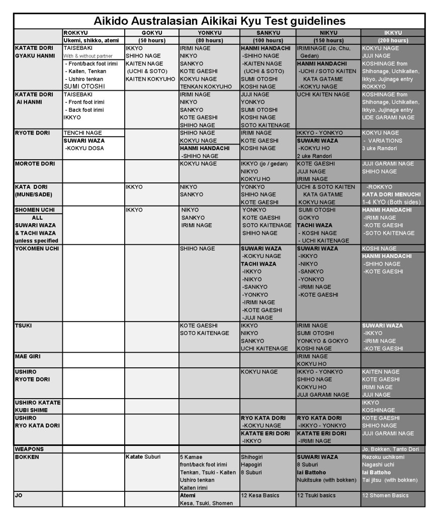 Aikido Australasian Aikikai Kyu Test guidelines: